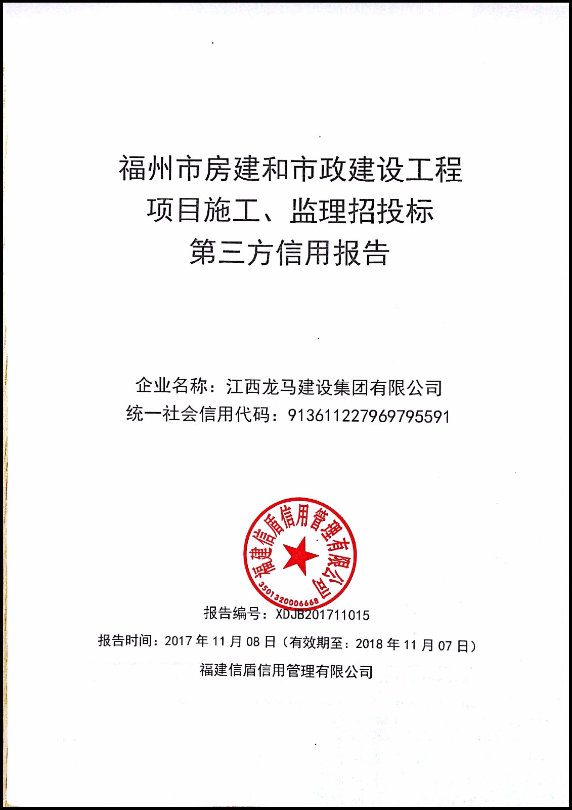 江西龍馬建設集團有限公司 XDJB201711015