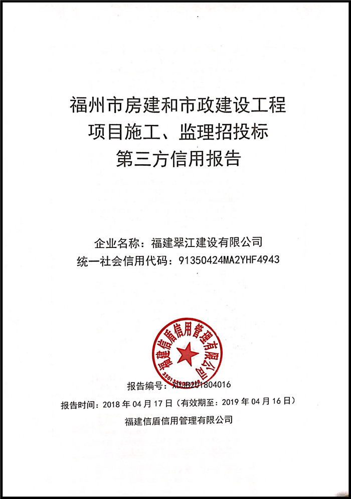 福建翠江建設有限公司 XDJB201804016